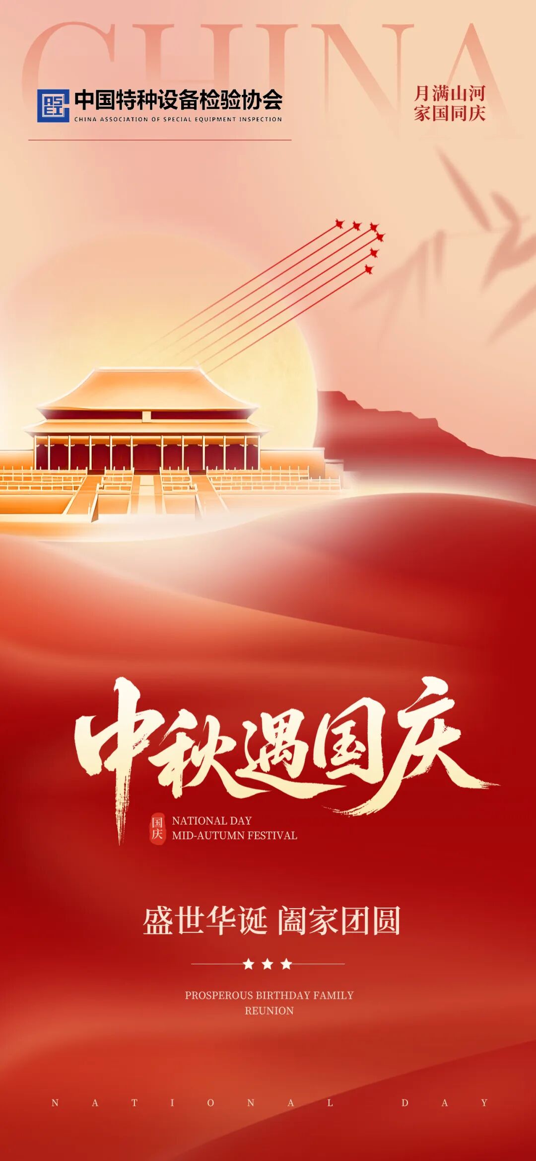值此中秋、国庆双节来临之际,中国特种设备检验协会秘书处向辛勤耕耘在特检战线的全体同仁,致以诚挚的节日问候和美好祝福!